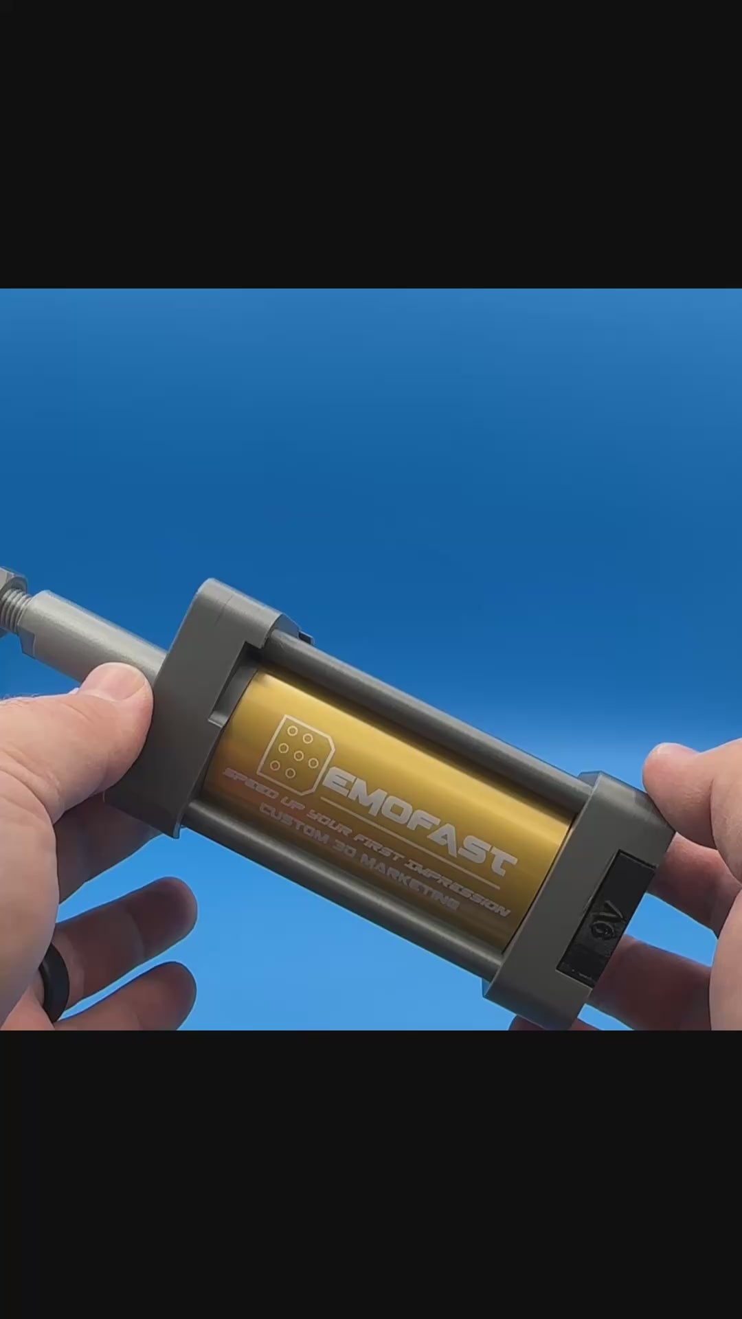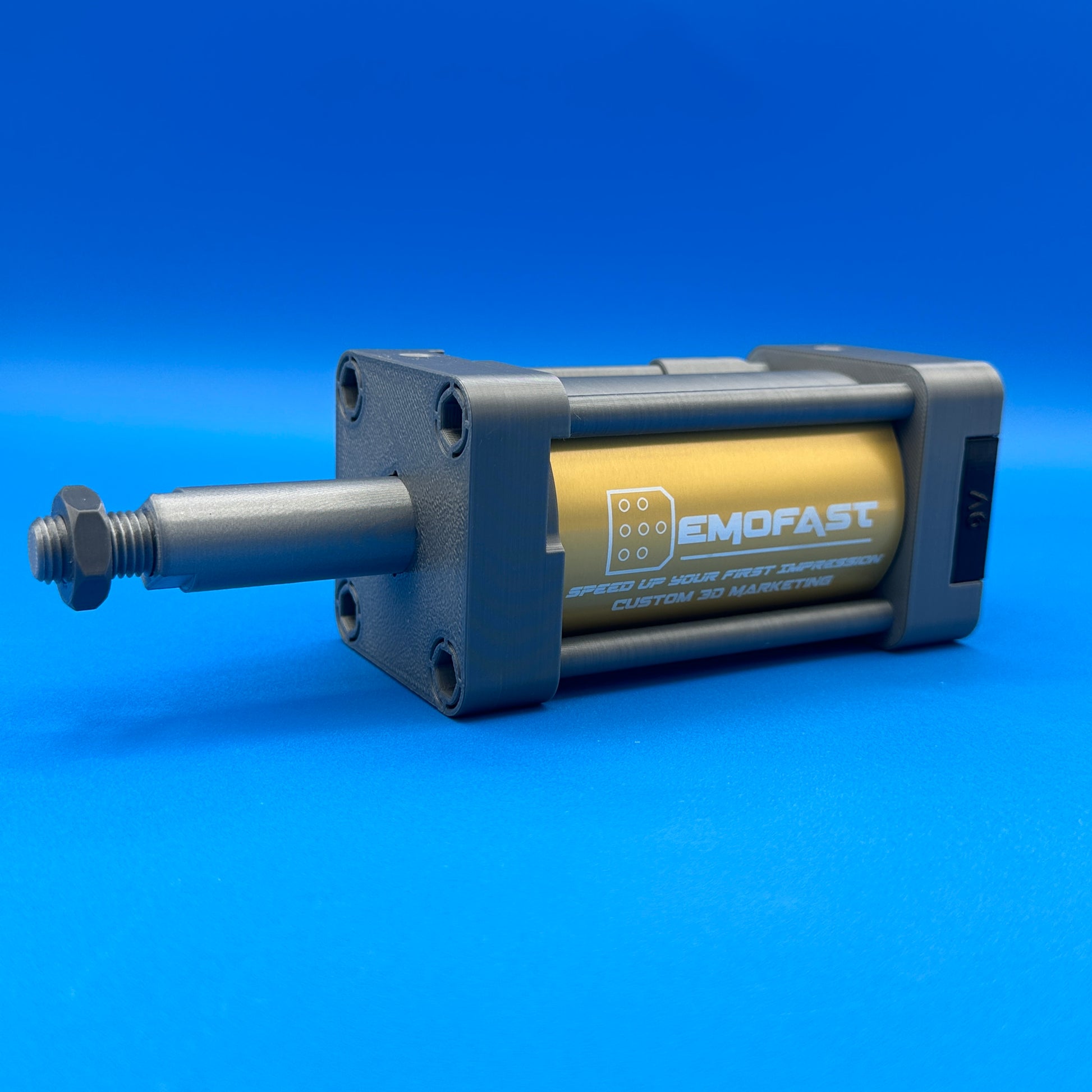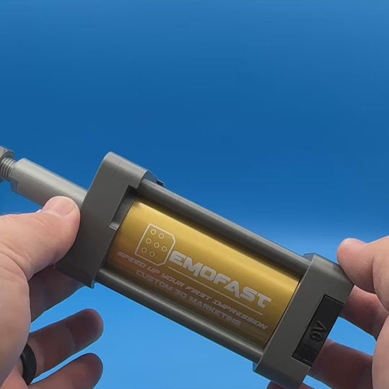 This 3D-printed marvel isn’t just a cylinder — it’s a hands-on conversation starter. Featuring a spring-loaded rod and functional nut, it doubles as the ultimate fidget giveaway for engineers and makers alike. Along the side, a sleek aluminum business card snaps neatly into place — fully customizable and removable for a personal touch. And when you think it can’t get cooler, the base hides a 9V battery powering two working LEDs that light up as the rod is pressed, simulating real position sensors in action.